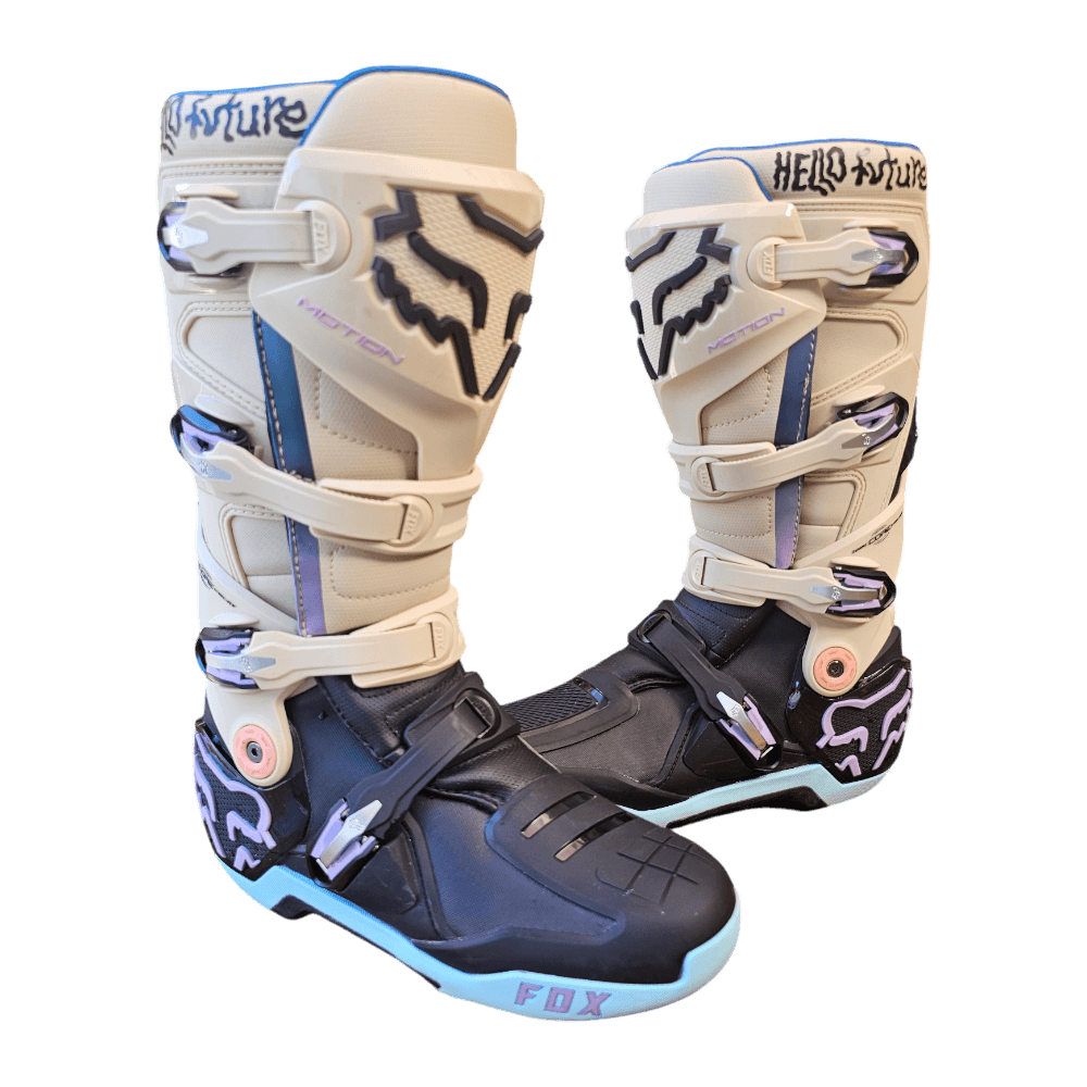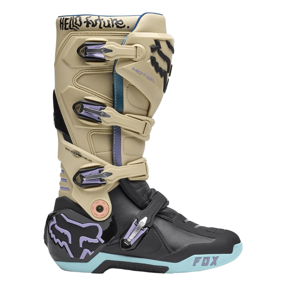 As novas botas Fox Motion são o resultado do desenvolvimento realizado pelos melhores pilotos de Supercross e Motocross da marca. Baseado no Instinct, o Fox Motion se destaca por oferecer excelentes níveis de conforto e ajuste. Eles apresentam um novo sistema de travamento e um chassi de baixo perfil para maior sensibilidade da alavanca.