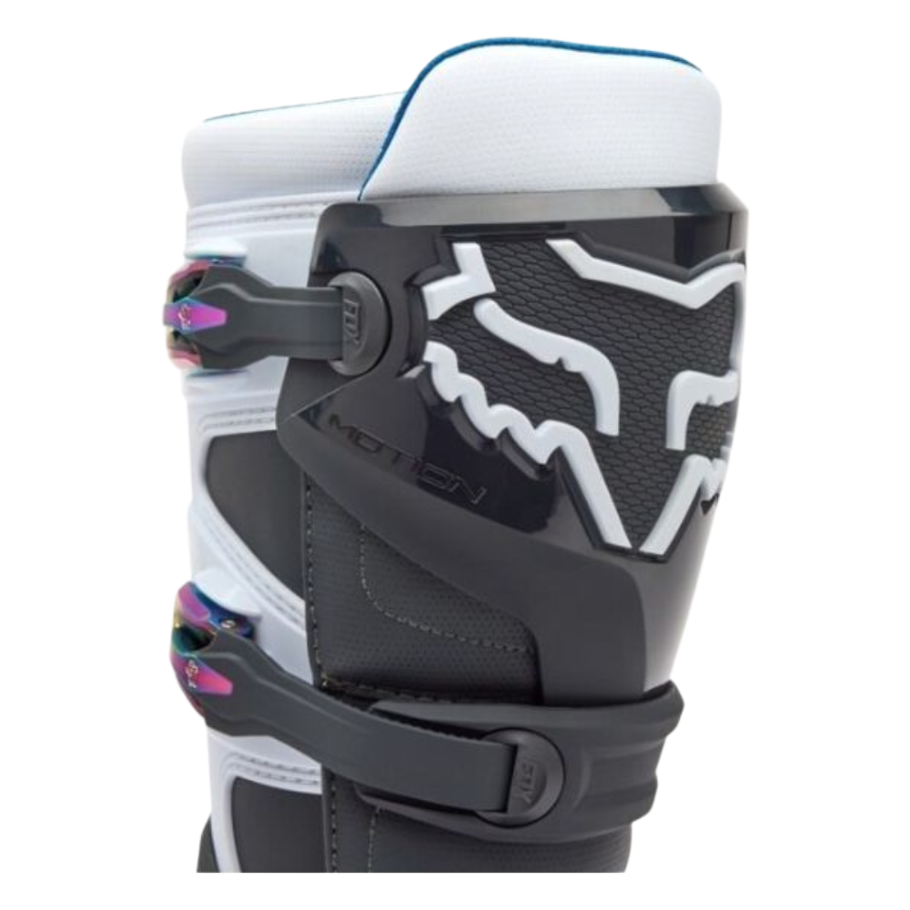 As novas botas Fox Motion são o resultado do desenvolvimento realizado pelos melhores pilotos de Supercross e Motocross da marca. Baseado no Instinct, o Fox Motion se destaca por oferecer excelentes níveis de conforto e ajuste. Eles apresentam um novo sistema de travamento e um chassi de baixo perfil para maior sensibilidade da alavanca.