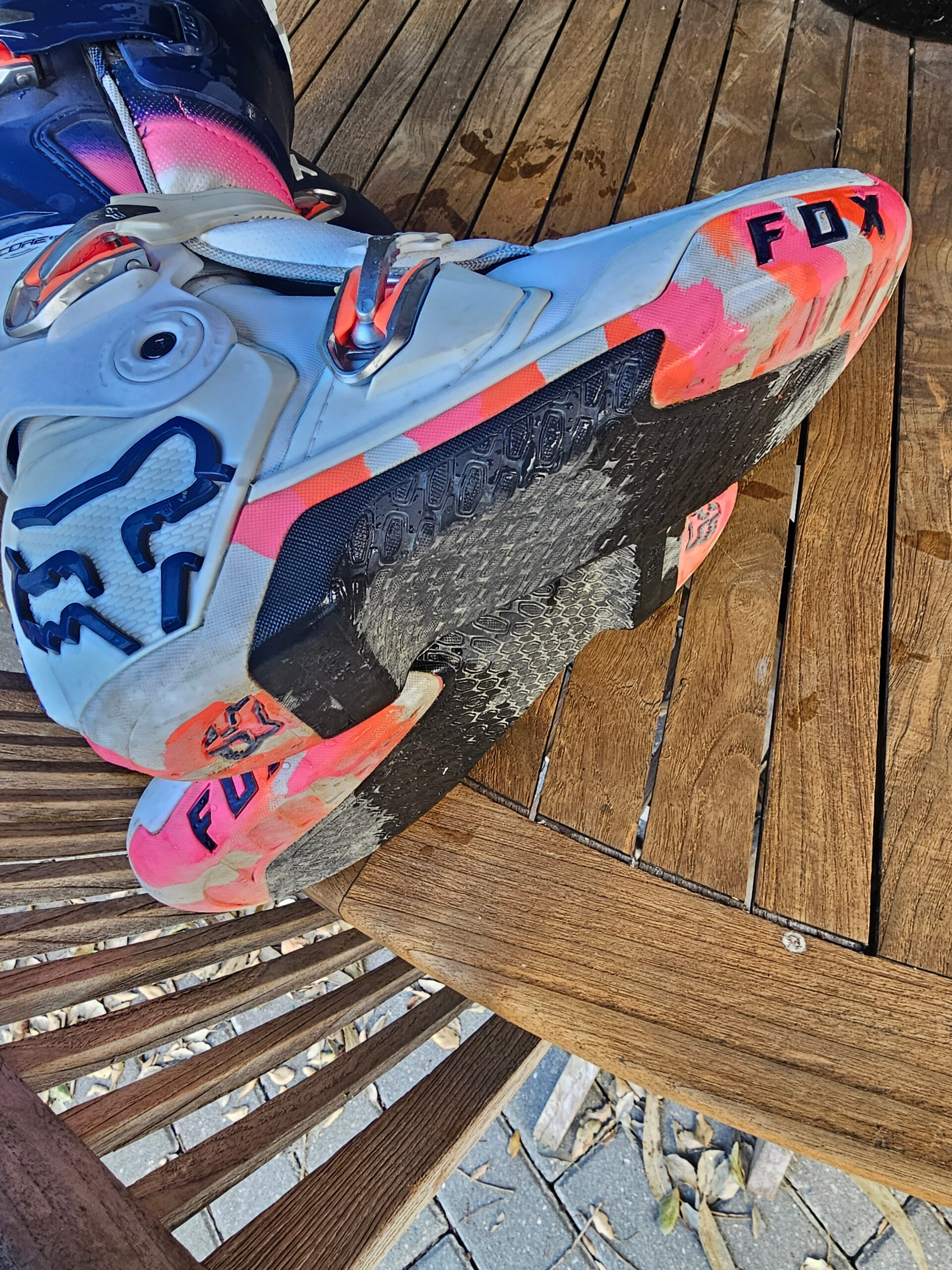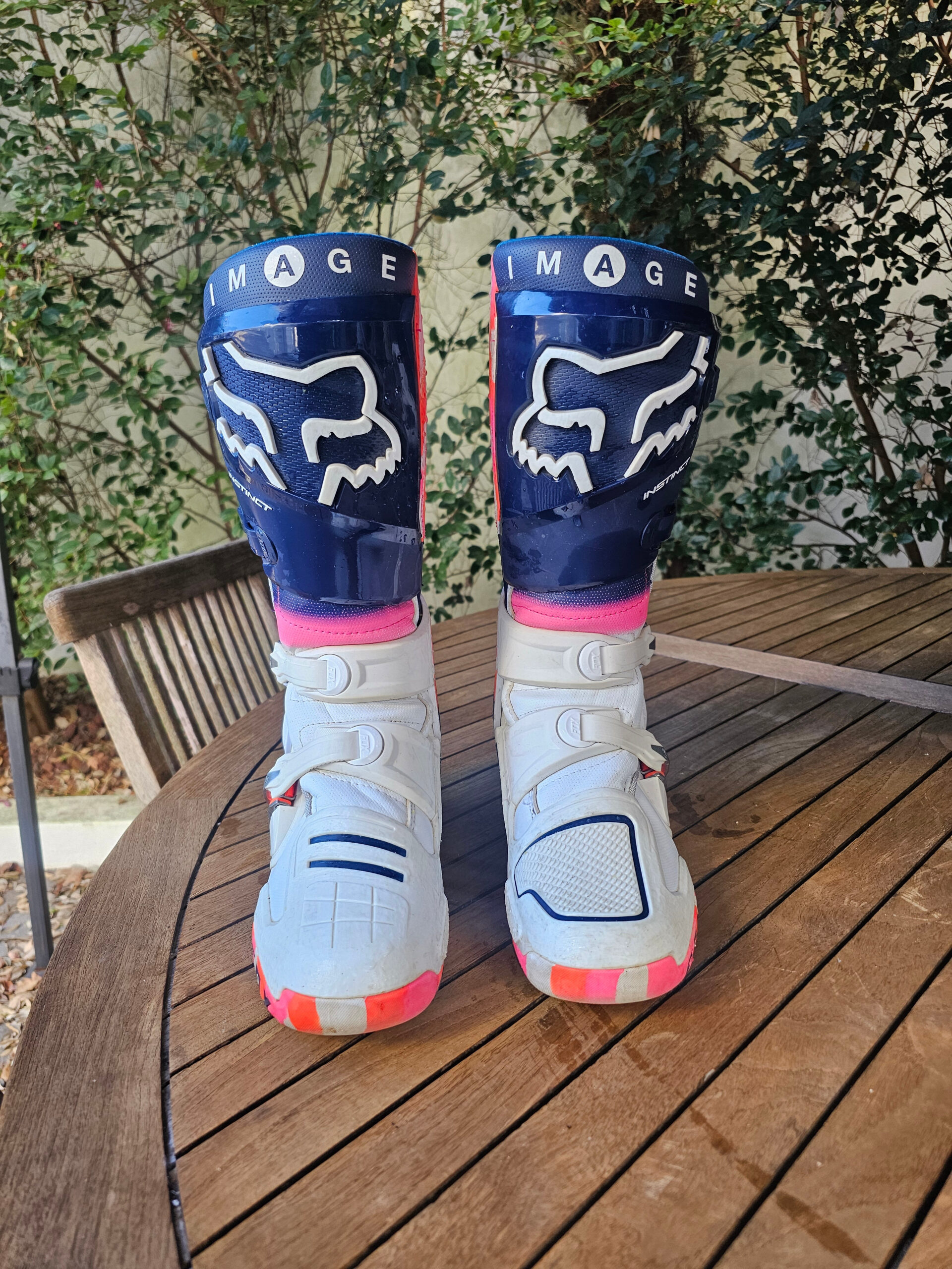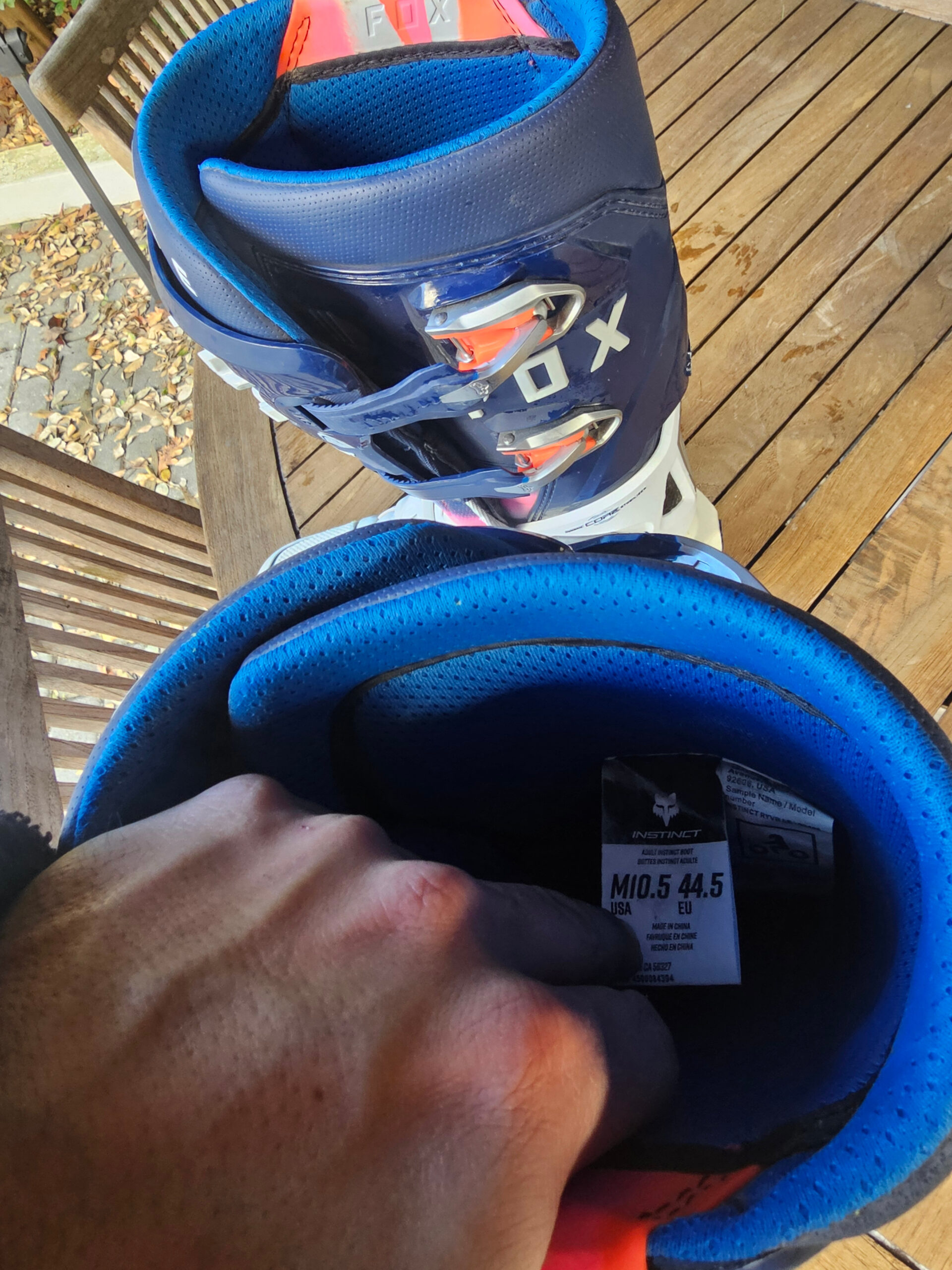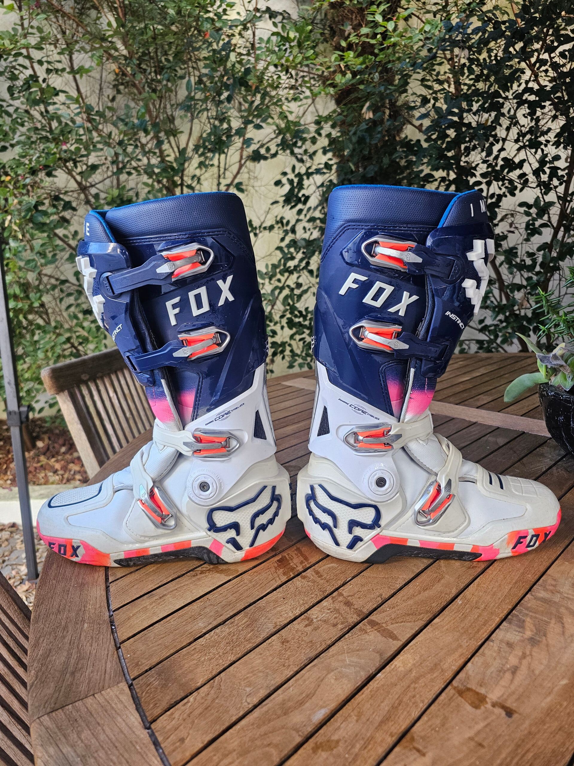BOTAS USADAS FOX INSTINCT 2 2025 – RYVR LIMITED EDITION – BRANCO/AZUL MARINHO