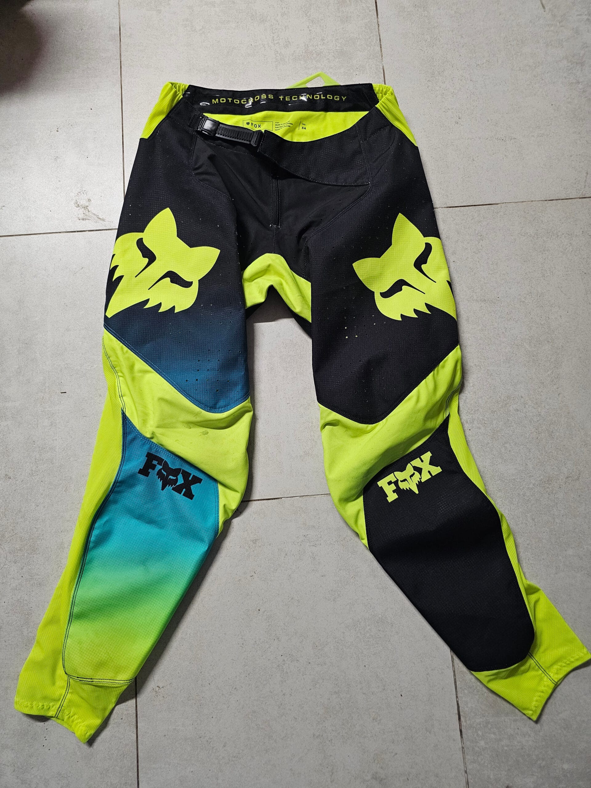 CALÇAS USADAS FOX 360 STREAK – AMARELO FLUOR/PRETO/AZUL