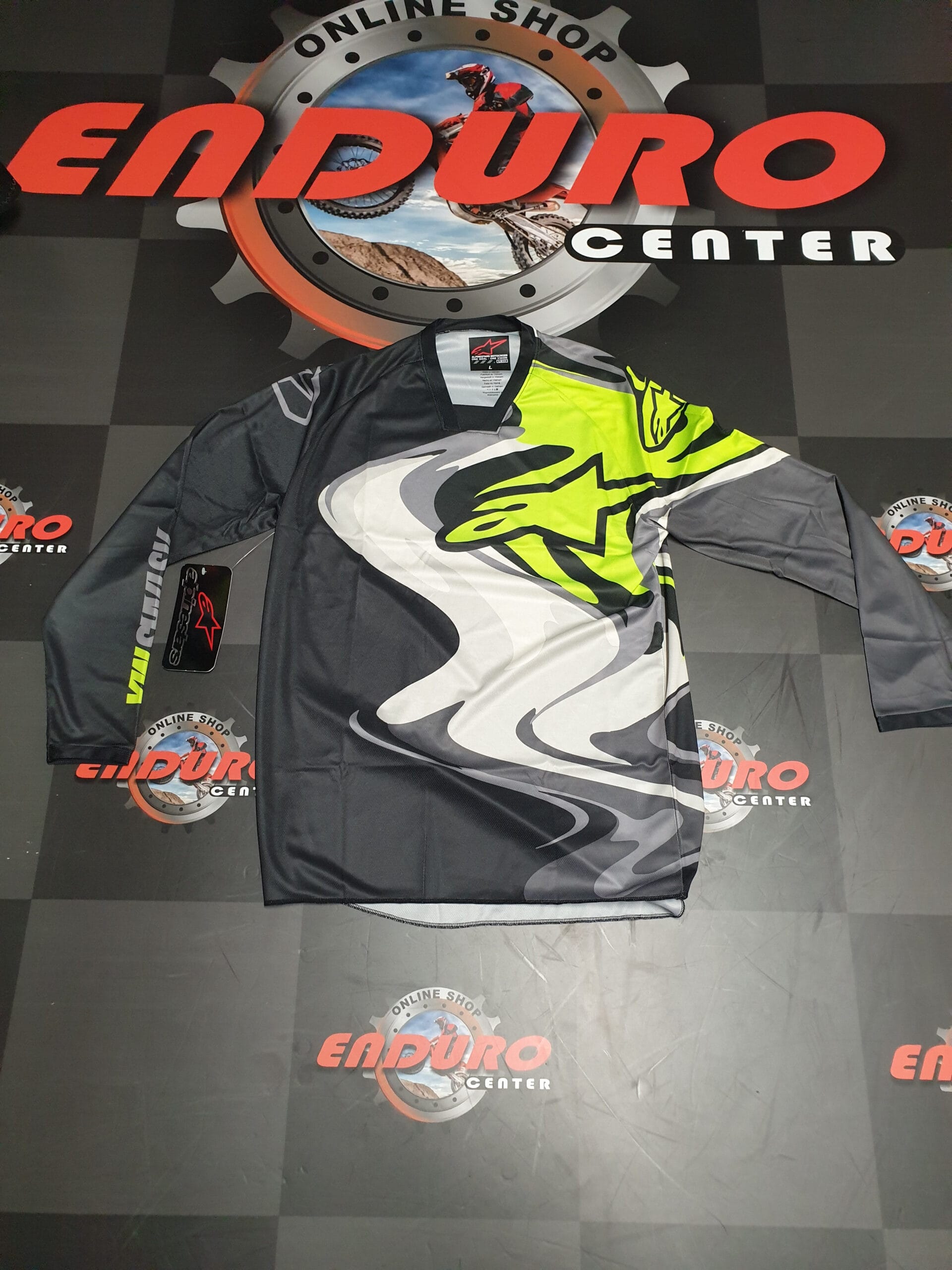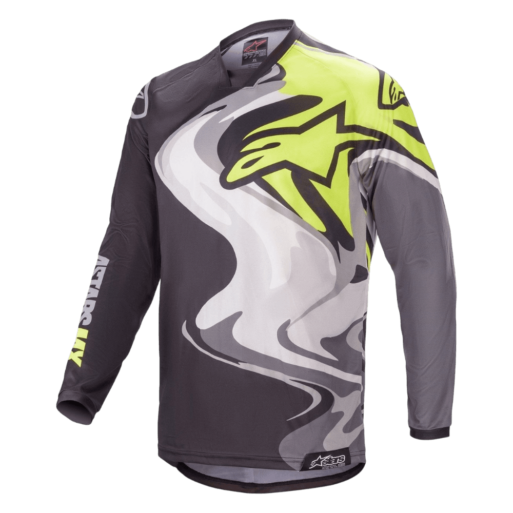CAMISOLA ALPINESTARS RACER FLAGSHIP – CINZA ESCURO/BRANCO/AMARELO FLUOR