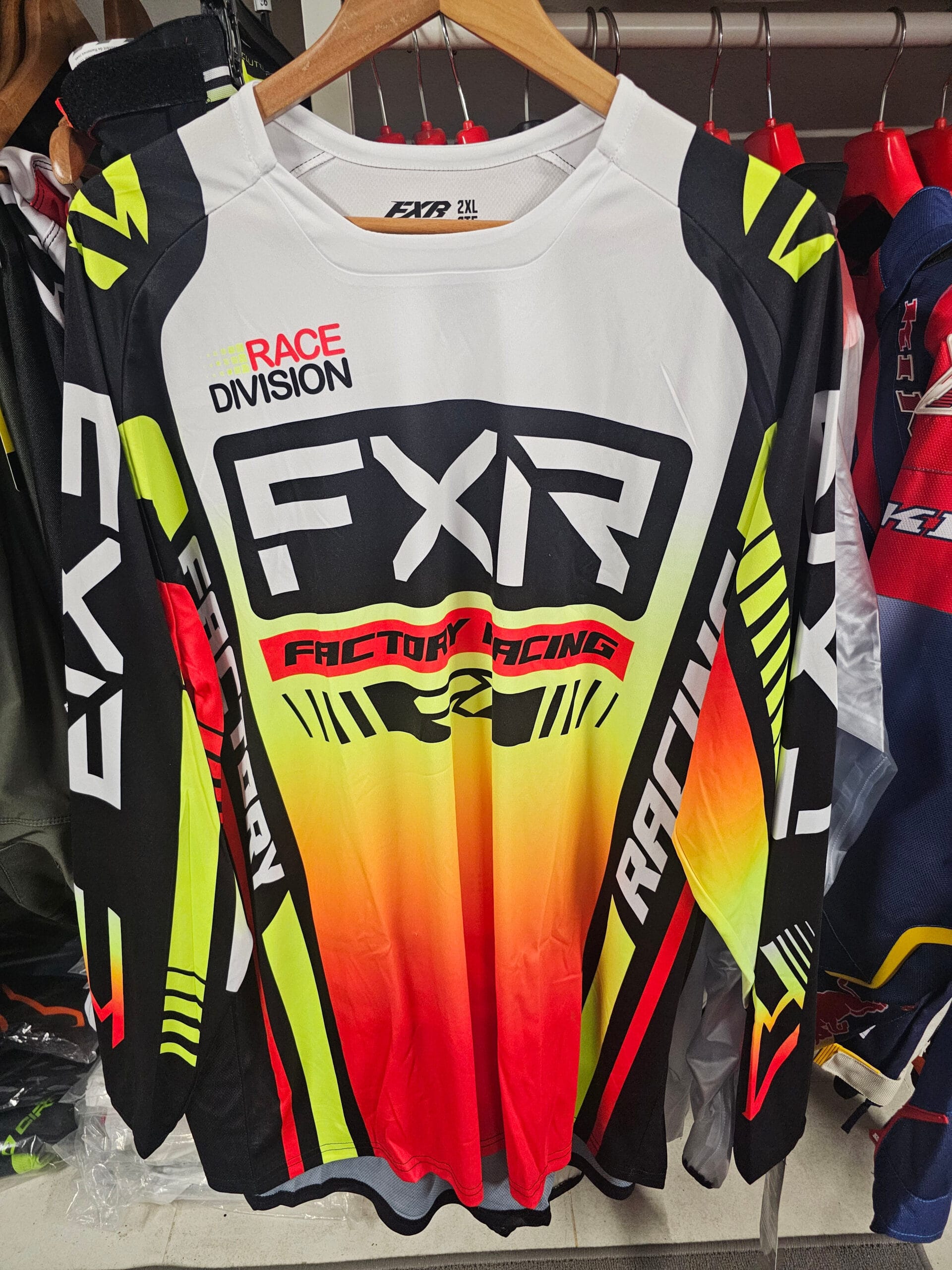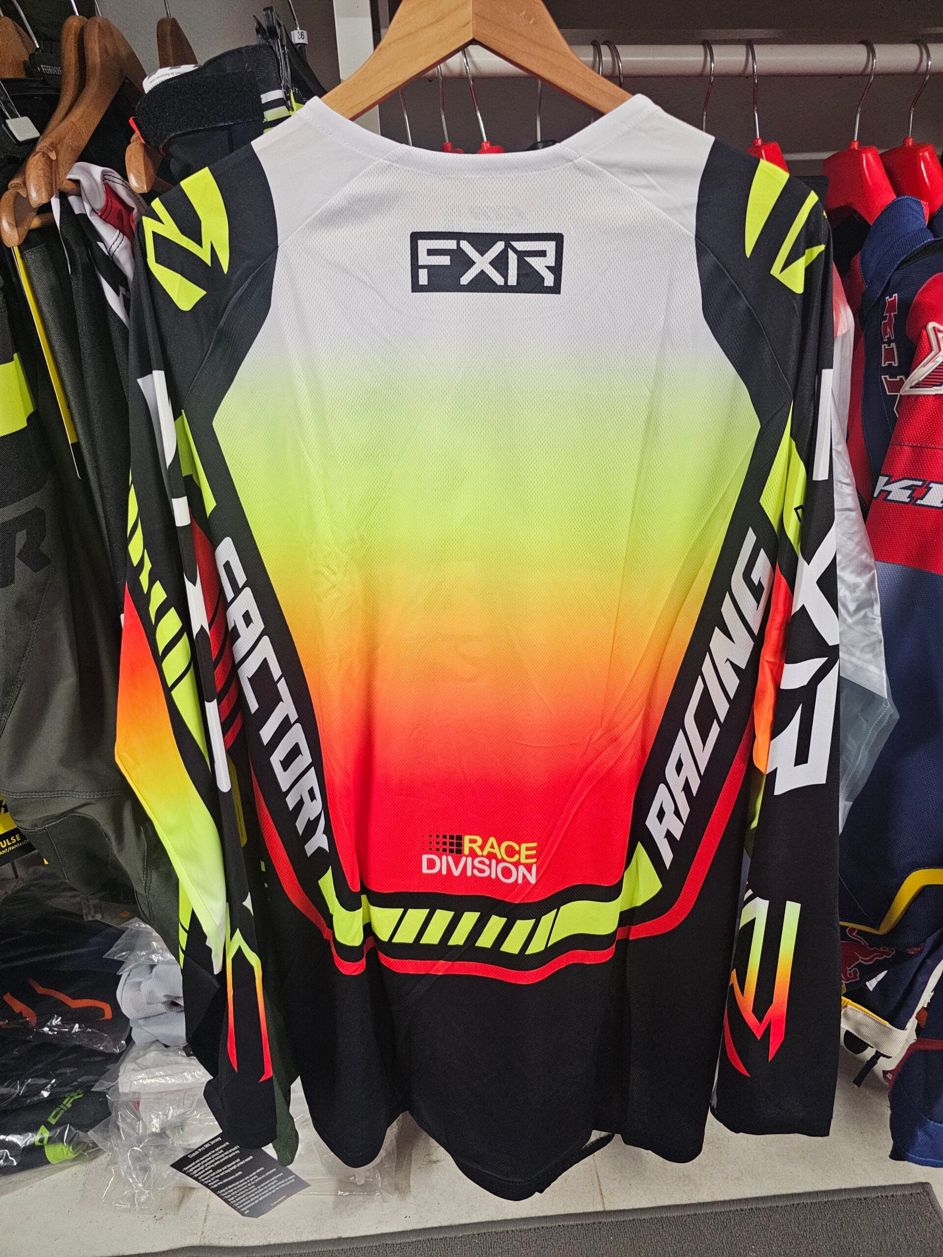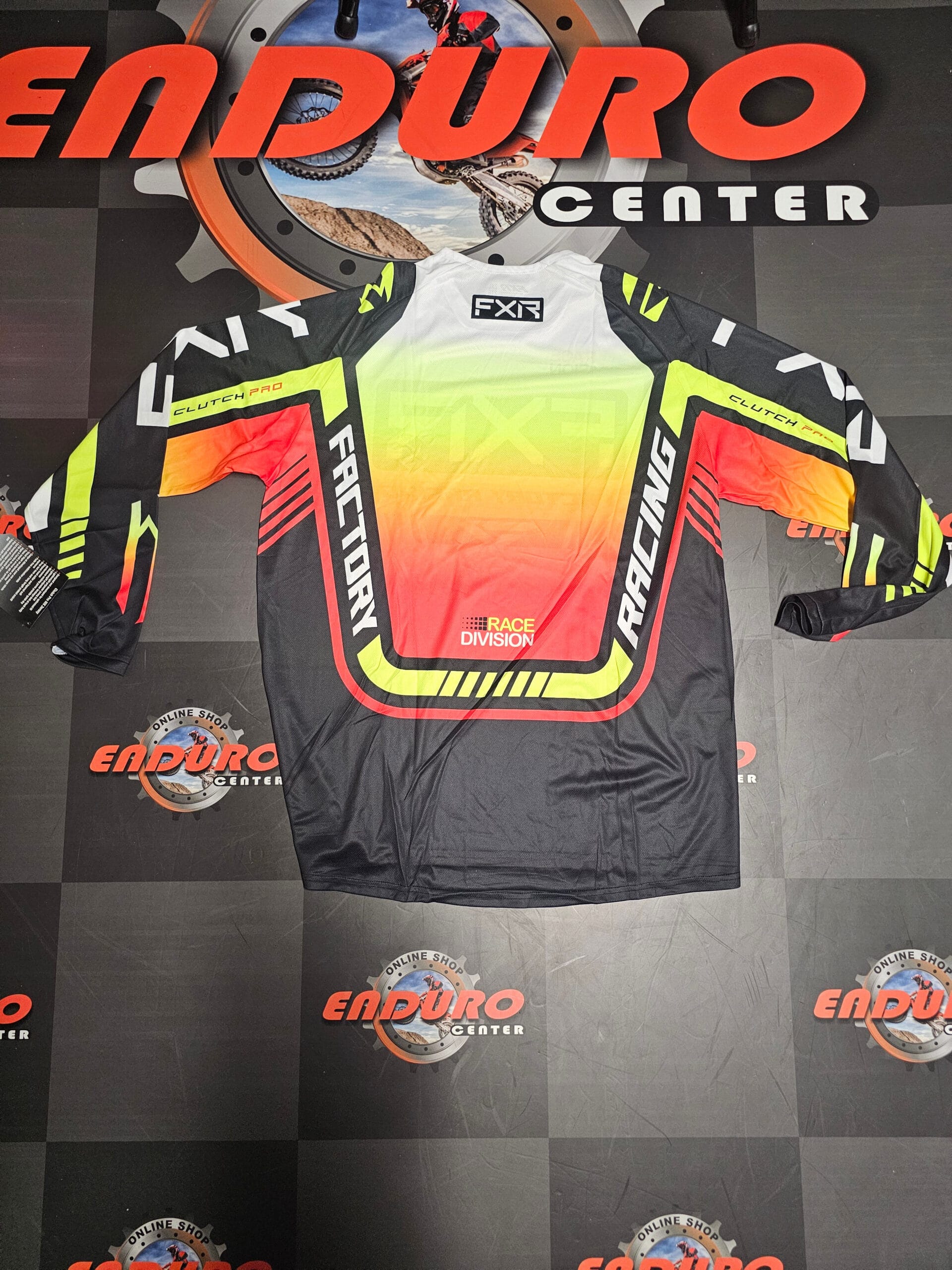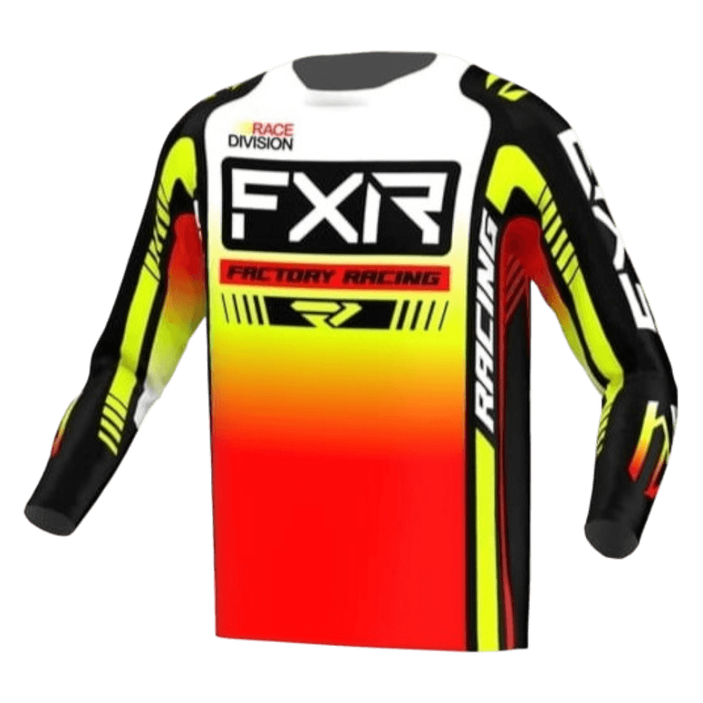 CAMISOLA FXR CLUTCH PRO MX – PRETO/VERMELHO FLUOR/BRANCO/AMARELO FLUOR