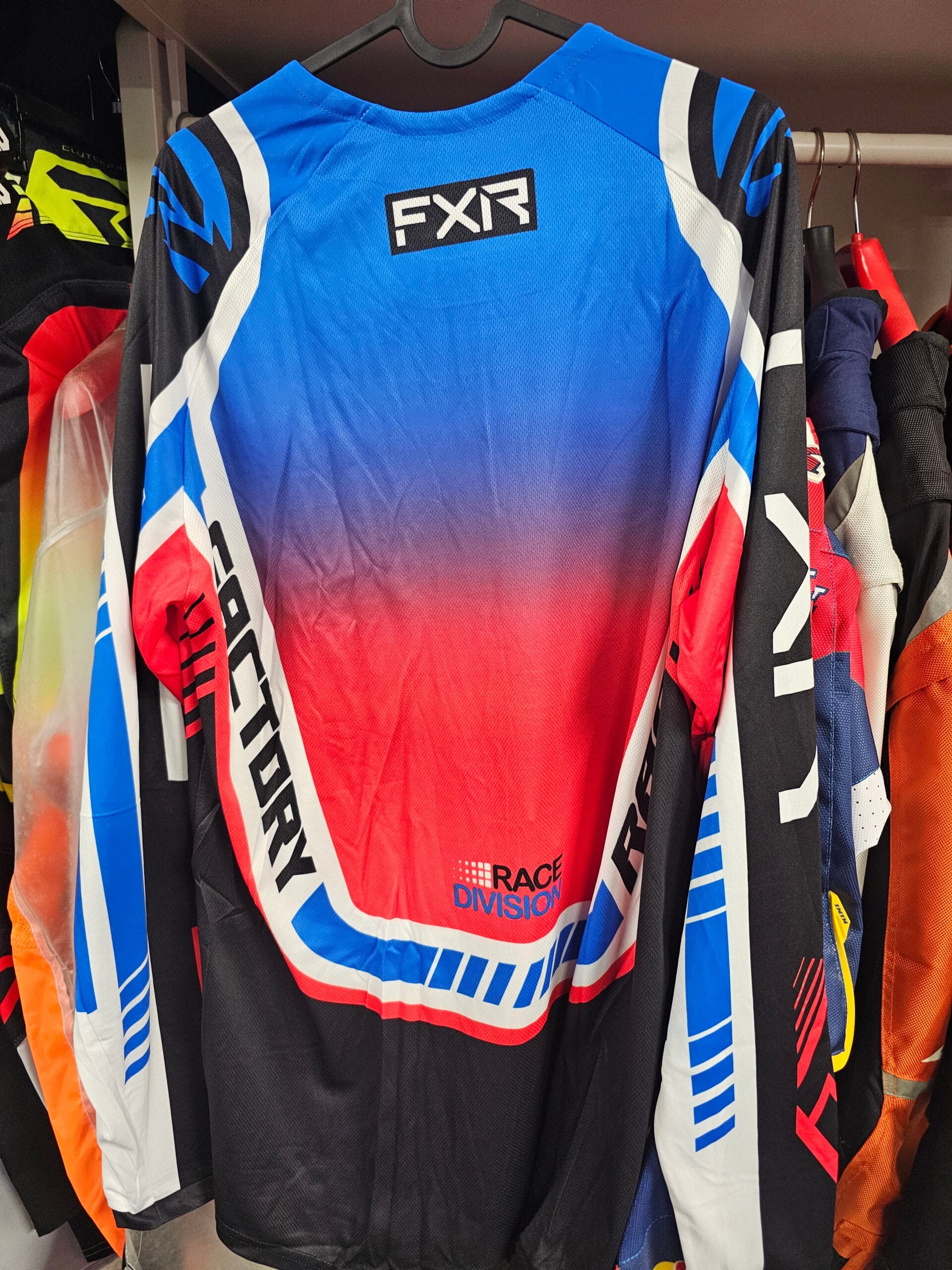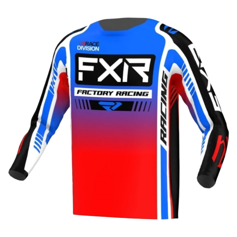 CAMISOLA FXR CLUTCH PRO MX – AZUL/VERMELHO FLUOR/BRANCO/PRETO