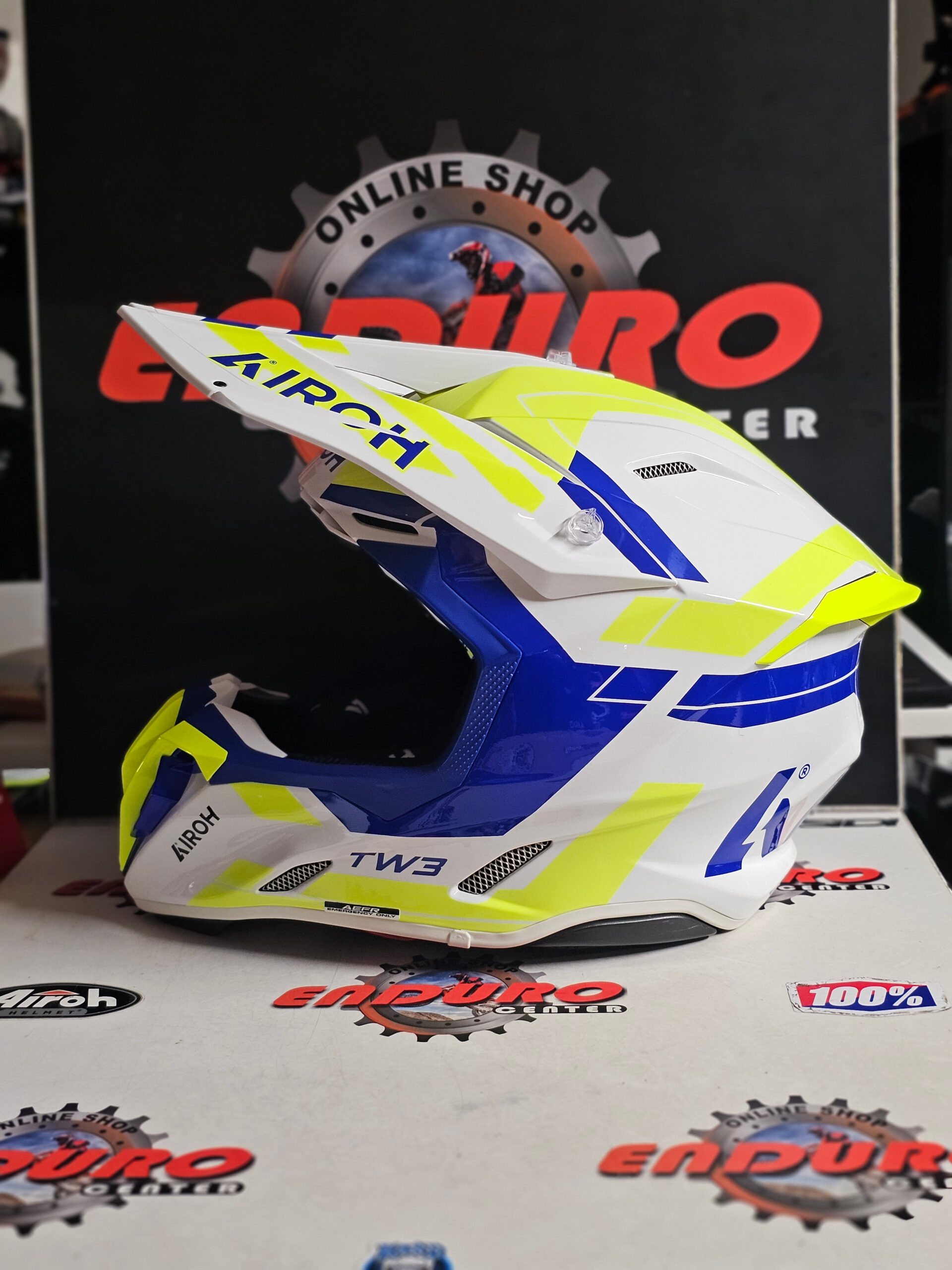 CAPACETE AIROH TWIST 3 DYNASTY – AZUL/AMARELO FLUOR/BRANCO GLOSS