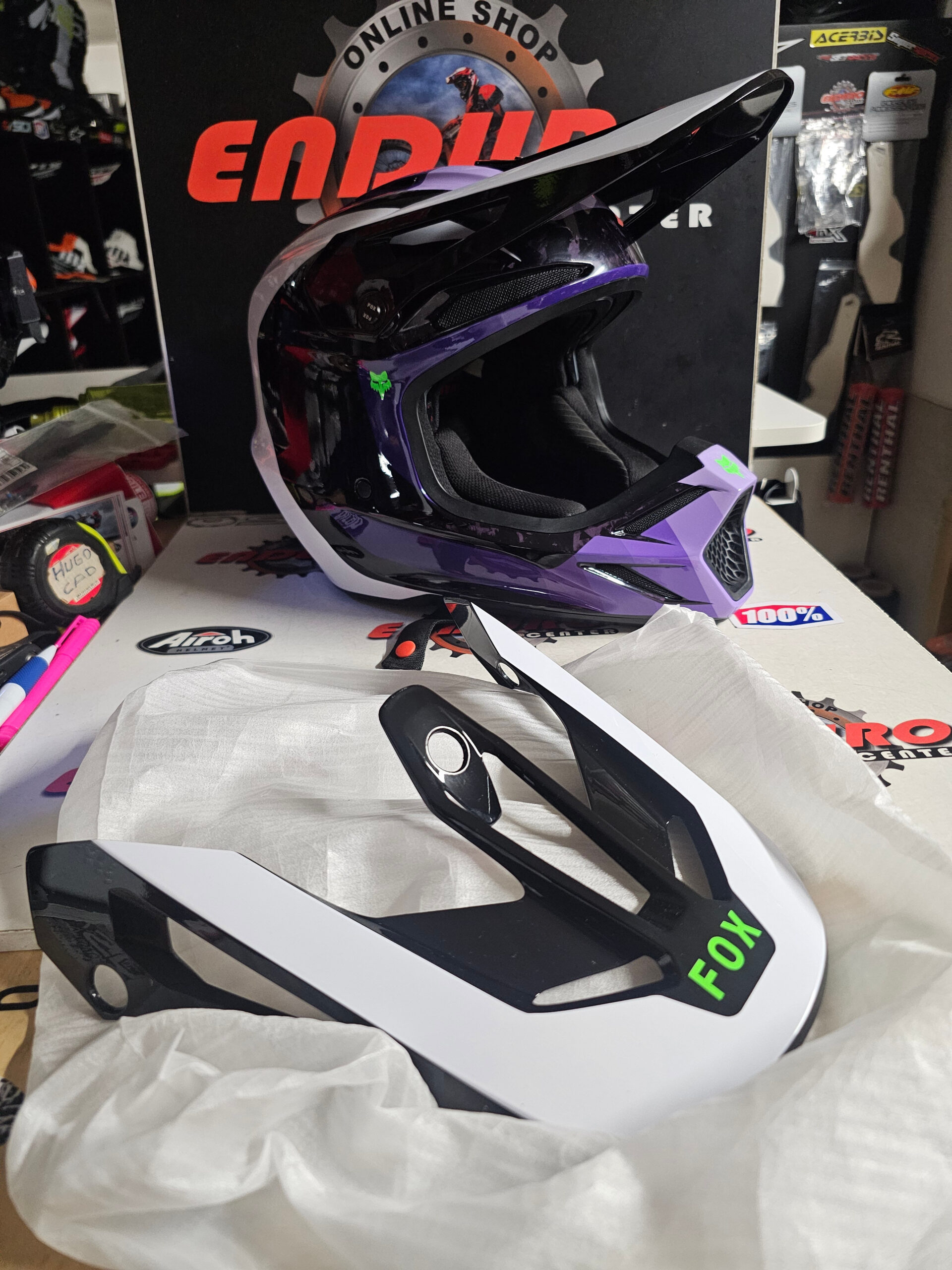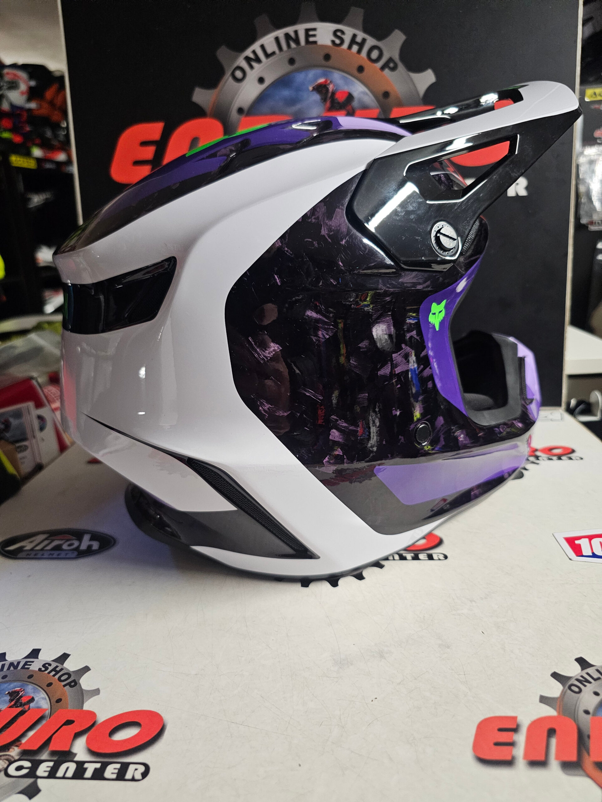CAPACETE USADO FOX V3 RS CARBON GRID 25/26 – PRETO/LILÁS/BRANCO CARBONO