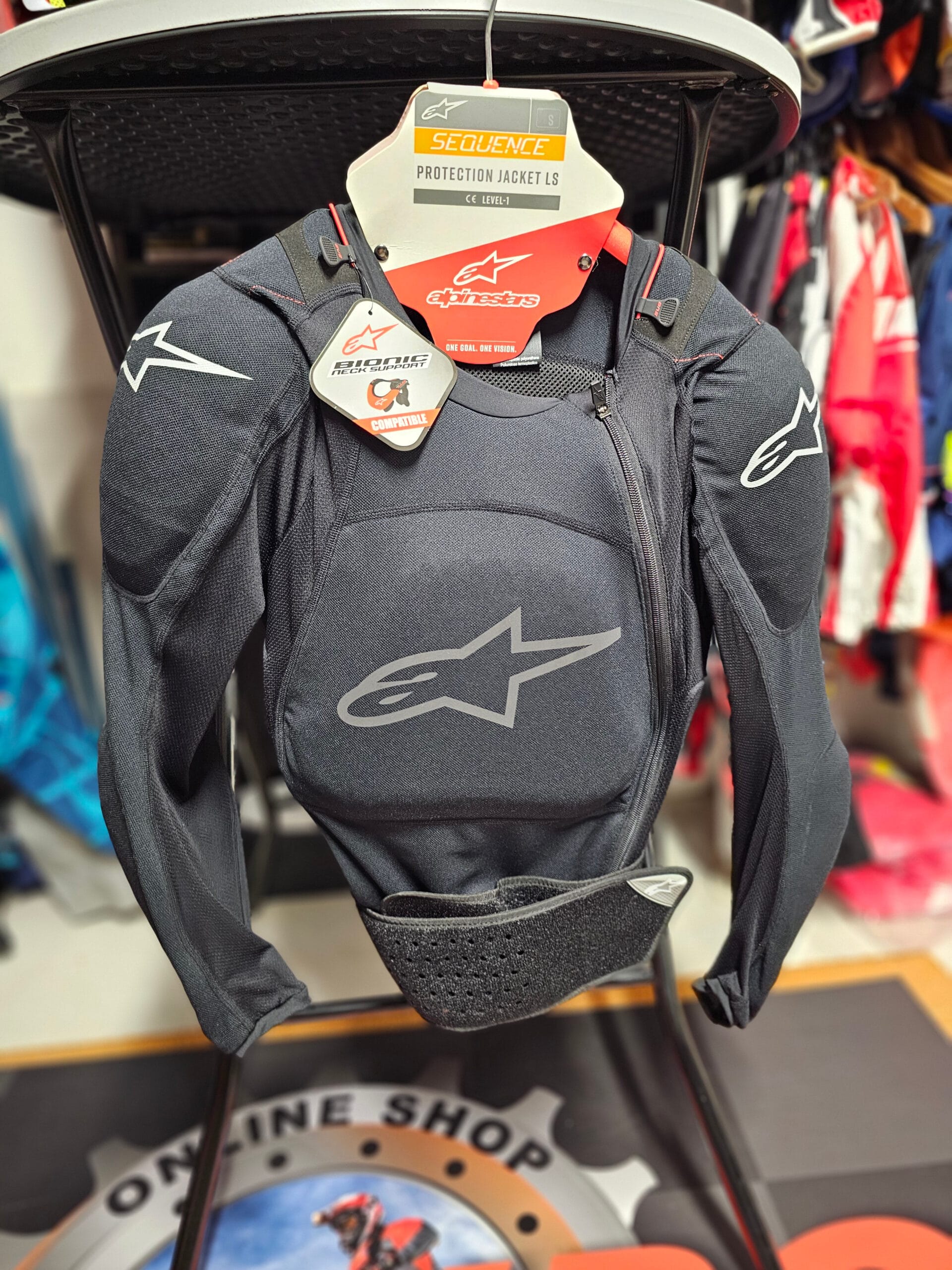 - O protetor nas costas está homologado CE EN 1621-2:2014 Nível 1.