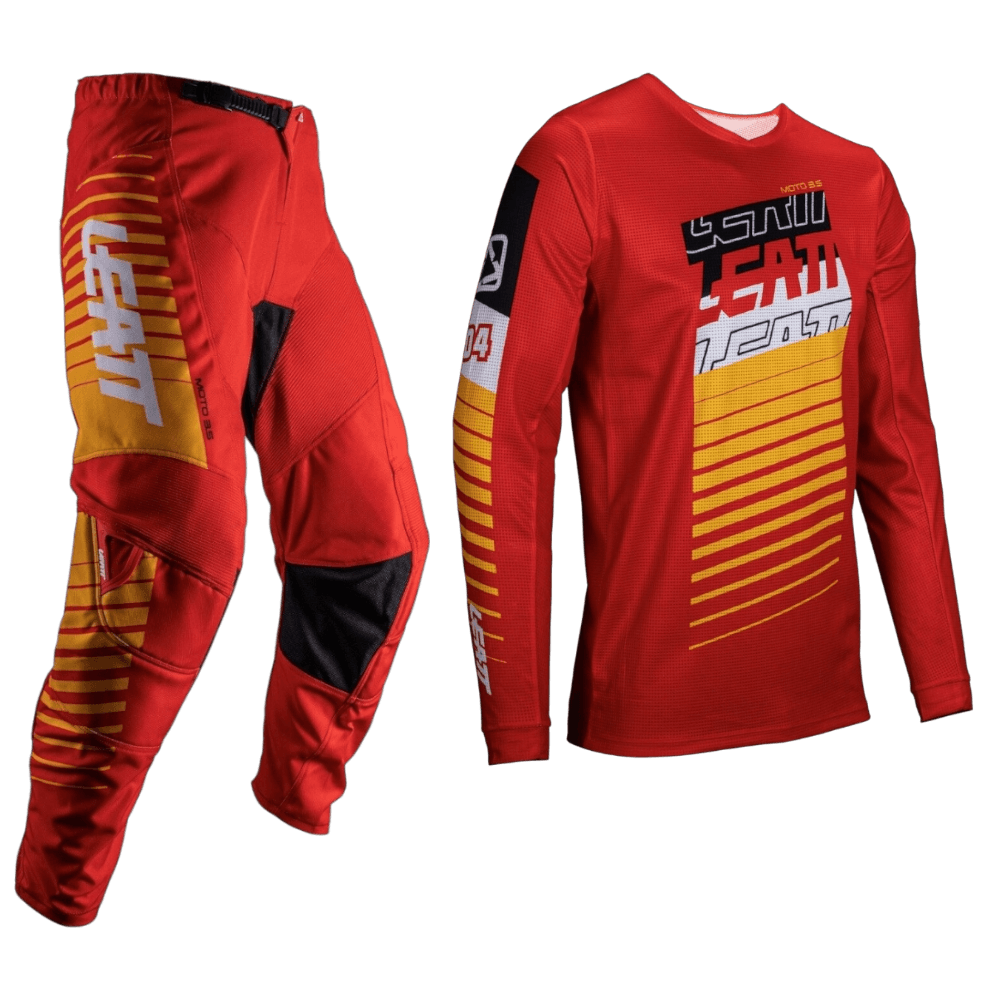 Os conjuntos Leatt desafiam a convenção com a mistura perfeita de durabilidade, ventilação e flexibilidade. Qualidade premium, como seria de esperar do vestuário técnico de motocross. Disponível em uma variedade de designs modernos para fazer você se destacar da multidão. Utilizando tecidos robustos de qualidade e durabilidade.