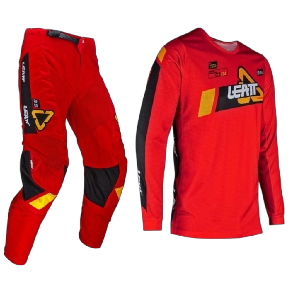Os conjuntos Leatt desafiam a convenção com a mistura perfeita de durabilidade, ventilação e flexibilidade. Qualidade premium, como seria de esperar do vestuário técnico de motocross. Disponível em uma variedade de designs modernos para fazer você se destacar da multidão. Utilizando tecidos robustos de qualidade e durabilidade.