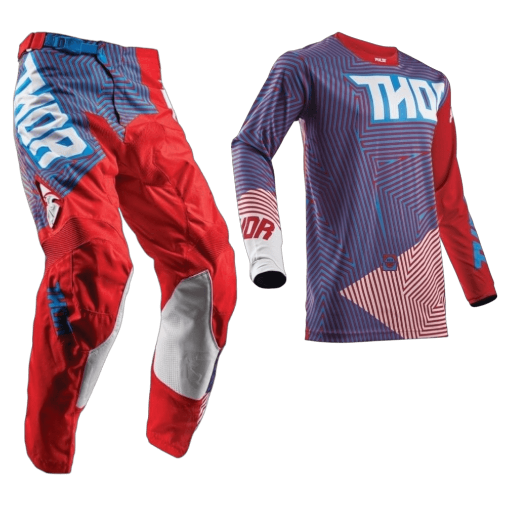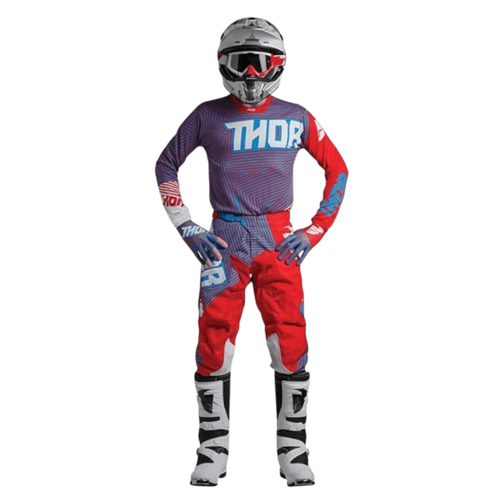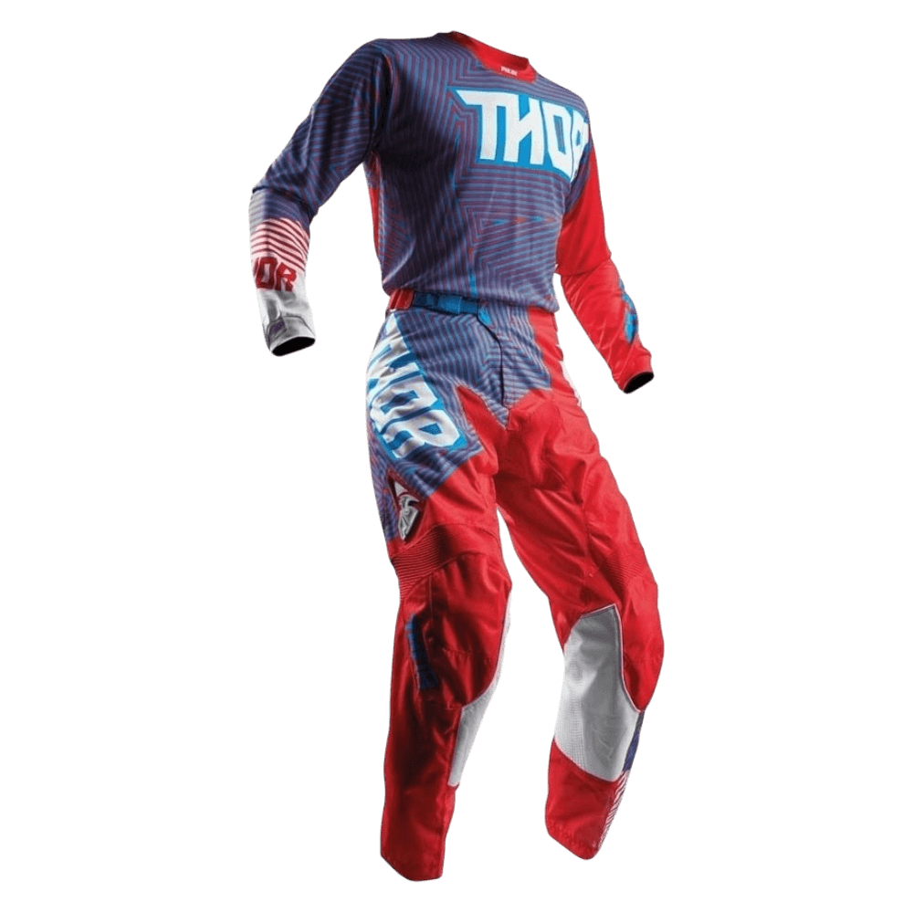 Os conjuntos Thor desafiam a convenção com a mistura perfeita de durabilidade, ventilação e flexibilidade. Qualidade premium, como seria de esperar do vestuário técnico de motocross. Disponível em uma variedade de designs modernos para fazer você se destacar da multidão. Utilizando o novo tecido In-Motion cortada a laser e com construção anatômica de fitting.