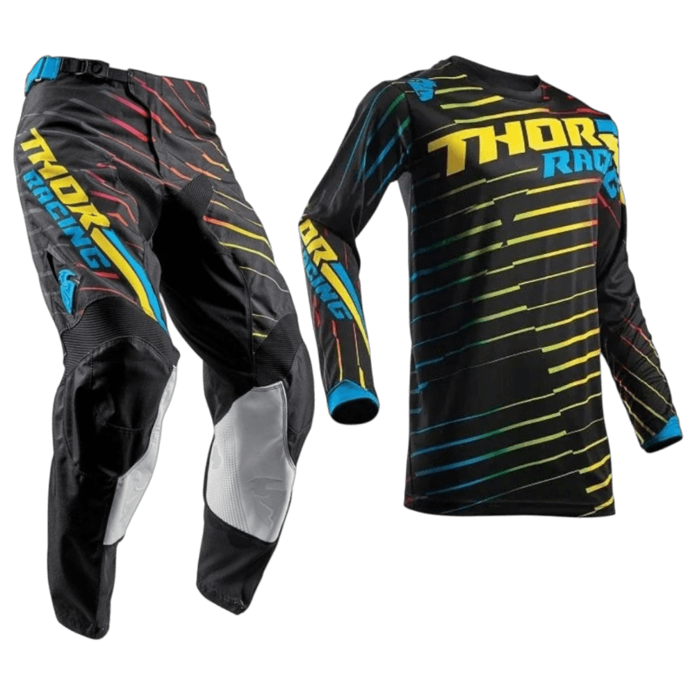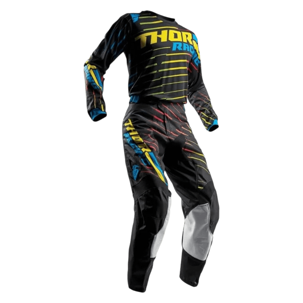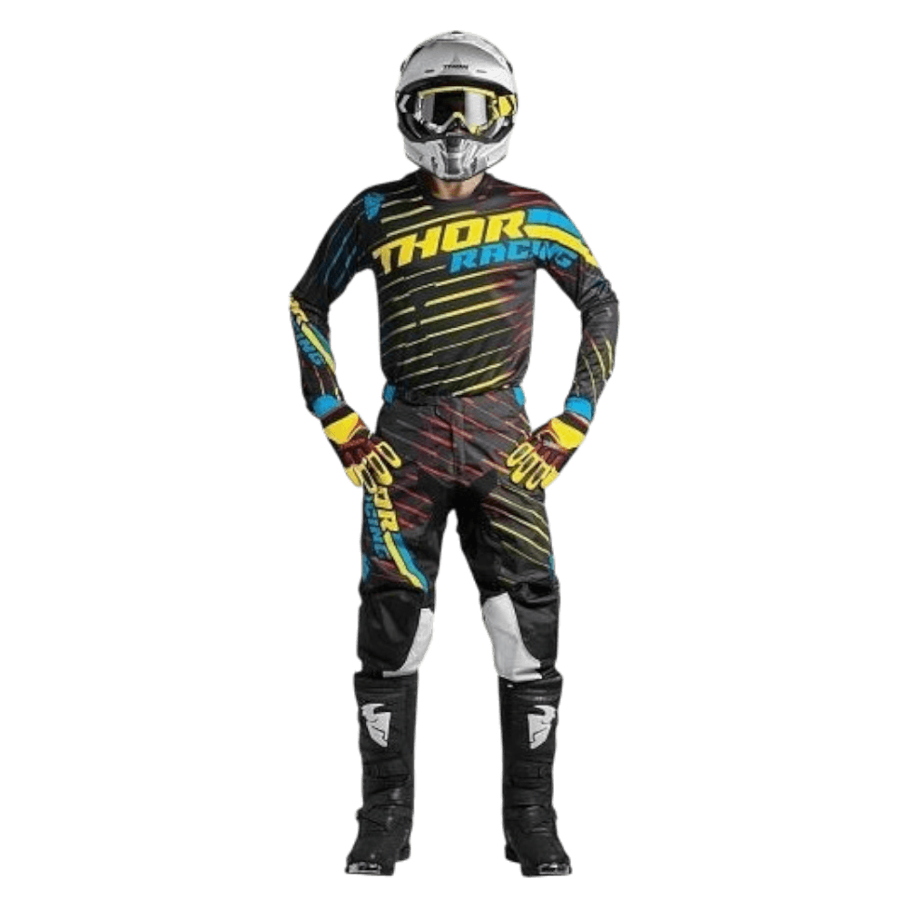 Os conjuntos Thor desafiam a convenção com a mistura perfeita de durabilidade, ventilação e flexibilidade. Qualidade premium, como seria de esperar do vestuário técnico de motocross. Disponível em uma variedade de designs modernos para fazer você se destacar da multidão. Utilizando o novo tecido In-Motion cortada a laser e com construção anatômica de fitting.
