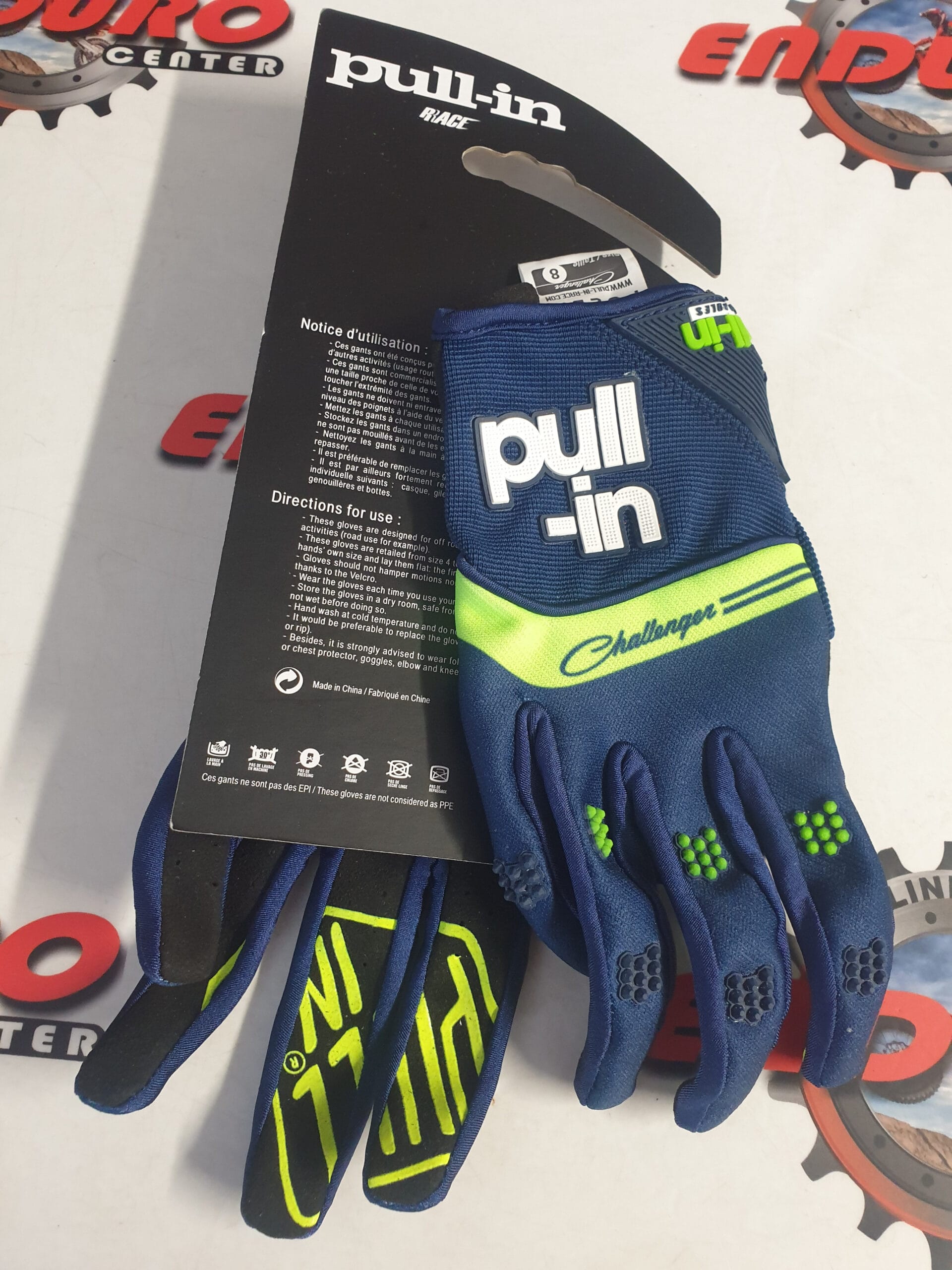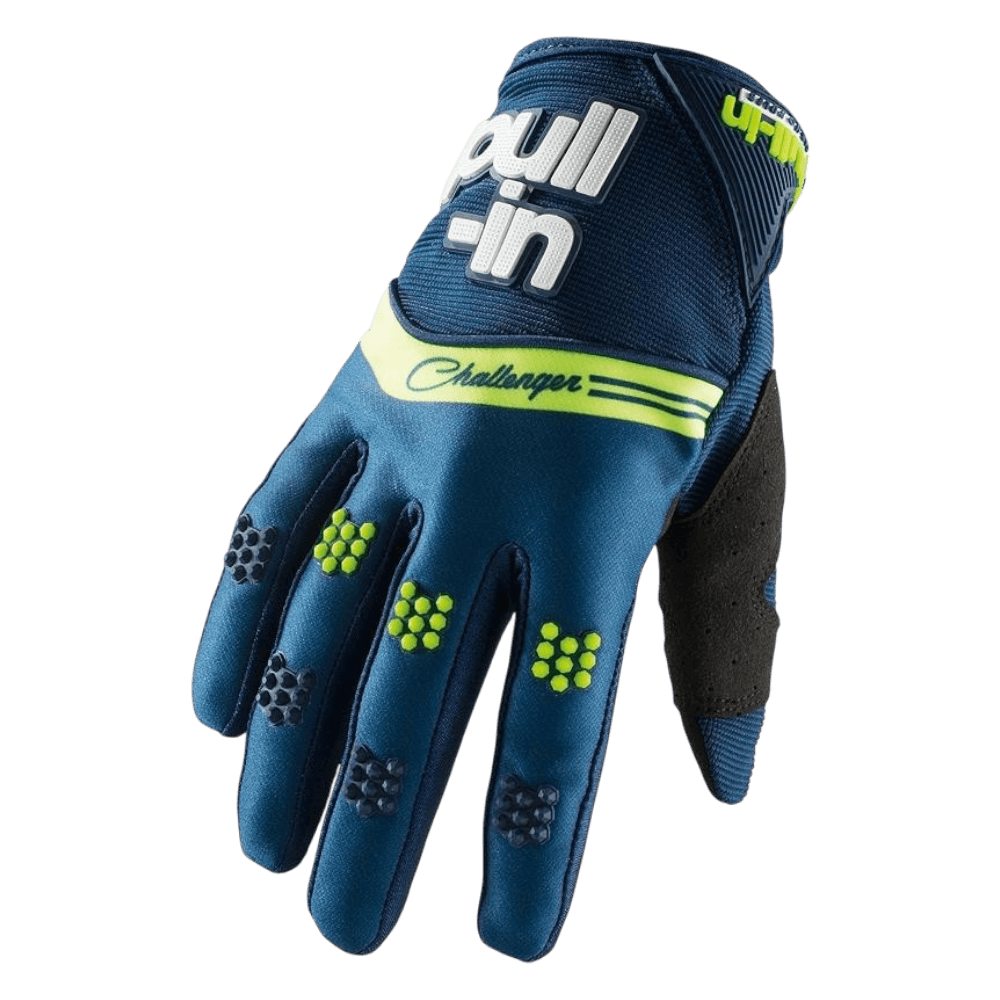 Pull-In Challenger (Motocross, Enduro, BMX, etc.). Estas luvas proporcionam uma sensibilidade de controle significativa graças ao design refinado da palma. Sua elasticidade garante uma mobilidade confortável e as inserções de TPR oferecem proteção para os nós dos dedos.