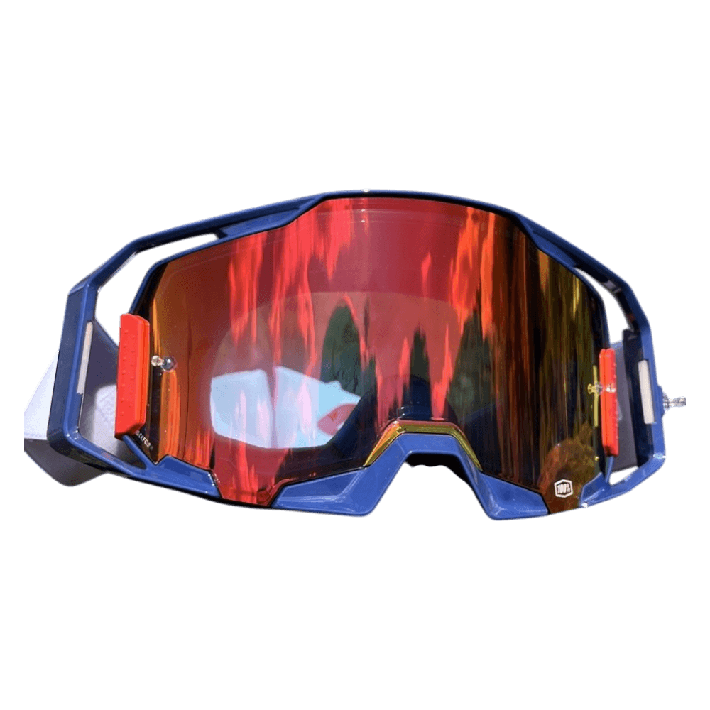 Óculos da 100% Gama Premium, acima dos topo de gama Racecraft 2 , óculos super completos, melhor angulo de visão, melhor qualidade de esponjas e ventilação. Lentes injetadas para melhores durabilidade e resistência ( 2mm) Fitas mais largas para a fixação no capacete e durabilidade das mesmas. Encaixa confortável e perfeito em quase todos os capacetes. Troca de lentes rápida com 2 clicks na lateral , as lentes podem ser trocadas em 10 segundos. Pode também adaptar o sistema forecast roll off se assim o pretender. E pode adquirir outros tipos de lentes, espelhadas, coloridas, duplas e trocar facilmente.