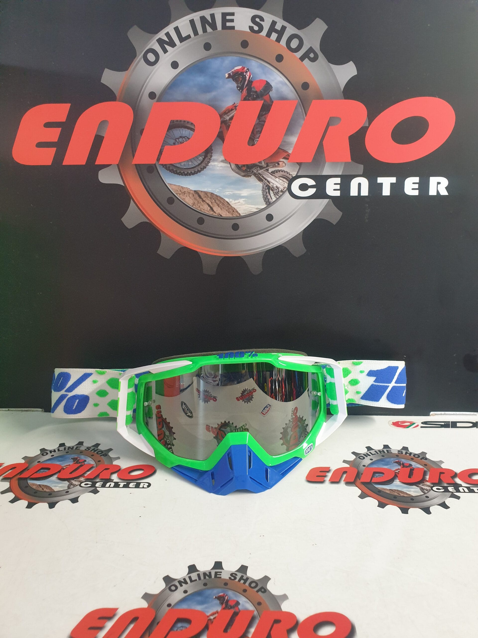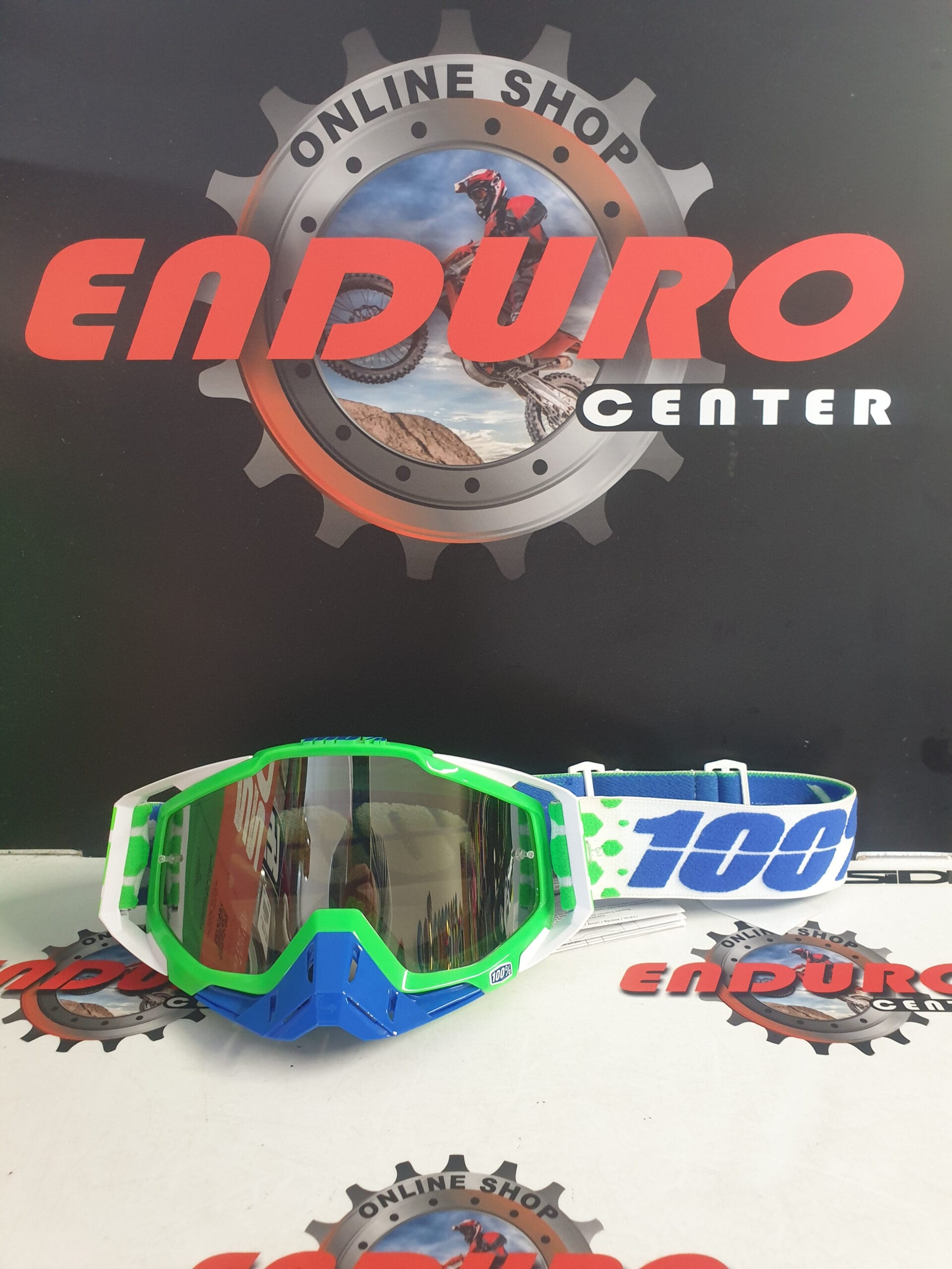 ÓCULOS 100% RACECRAFT GERAÇÃO 1 ALCHEMY – VERDE FLUOR/AZUL ROYAL/BRANCO/100% AZUL ROYAL
