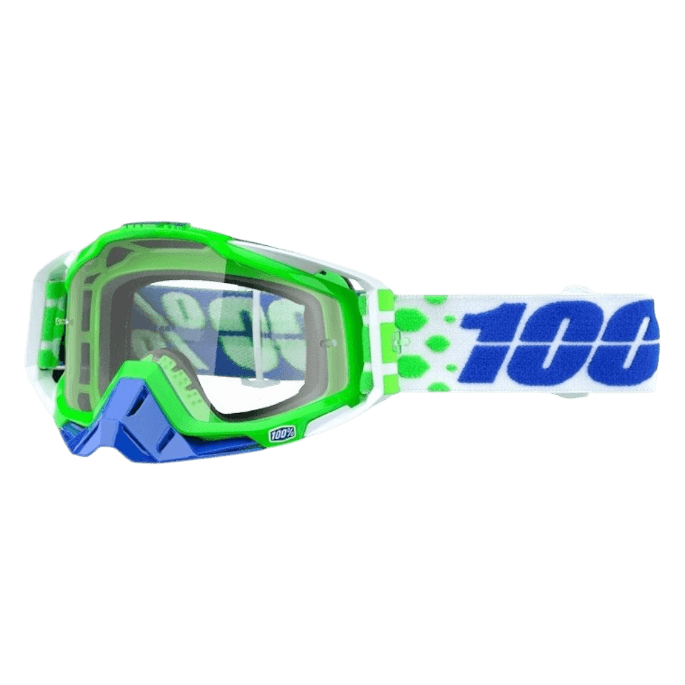 Os óculos de motocross 100% Racecraft estabelecem a referência para óculos de desempenho premium com um campo de visão vertical 17,5% maior. Oferece máxima proteção, melhor visibilidade e alto conforto, ideal para um ótimo desempenho na pista. Contém uma espuma facial ulta espessa de camada tripla que absorve o suor, é perfeita para condições exigentes. Uma tira revestida a silicone com 45 mm de largura garante a máxima aderência, enquanto uma lente de policarbonato revestida a anti embaciamento garante uma visão nítida e com uma máscara fantástica com vários pontos de respiro e com um melhor encaixa no capacete, com um design mais agressivo e profissional . É considerado o topo de gama das 3 Gamas mais conhecidas ( Strata , Accuri e claro a Racecraft, a melhor e a mais completa, com mais acessórios )
